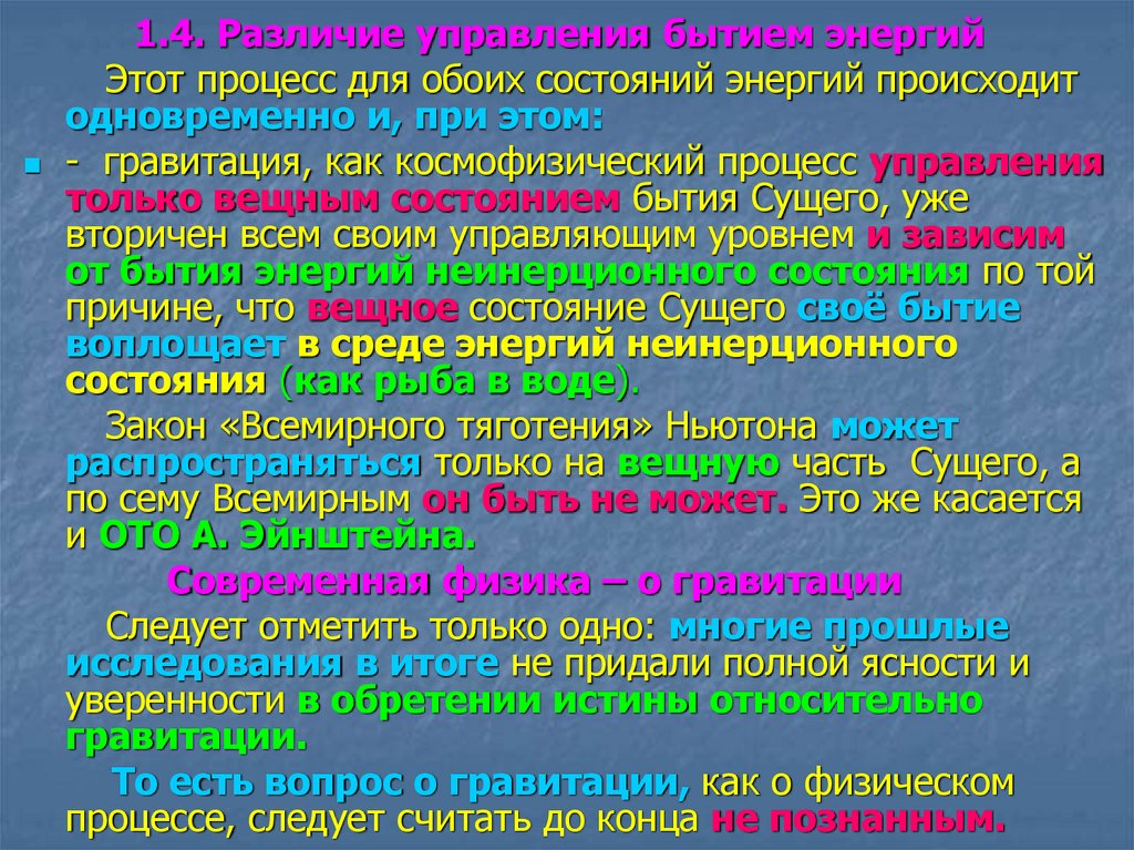 Различие управления бытием энергий