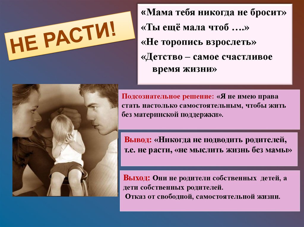 т.е. не расти, «не мыслить жизнь без мамы»