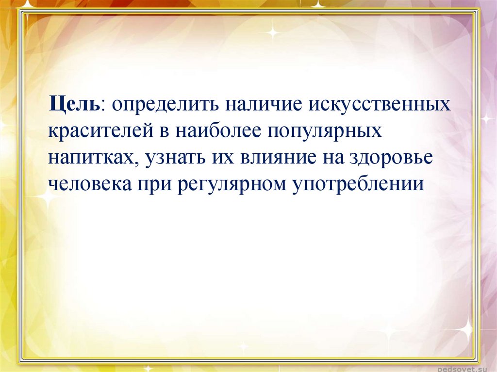 Цель: определить наличие искусственныхкрасителей в наиболее популярных