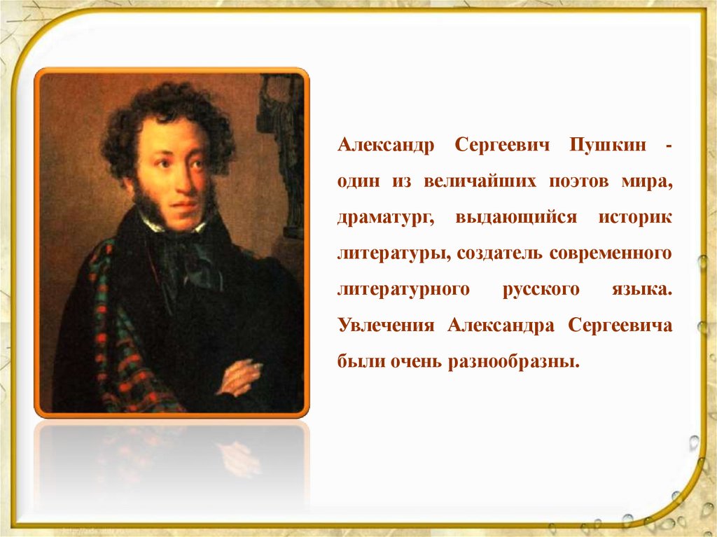 Александр Сергеевич Пушкин один из величайших поэтов мира,драматург,