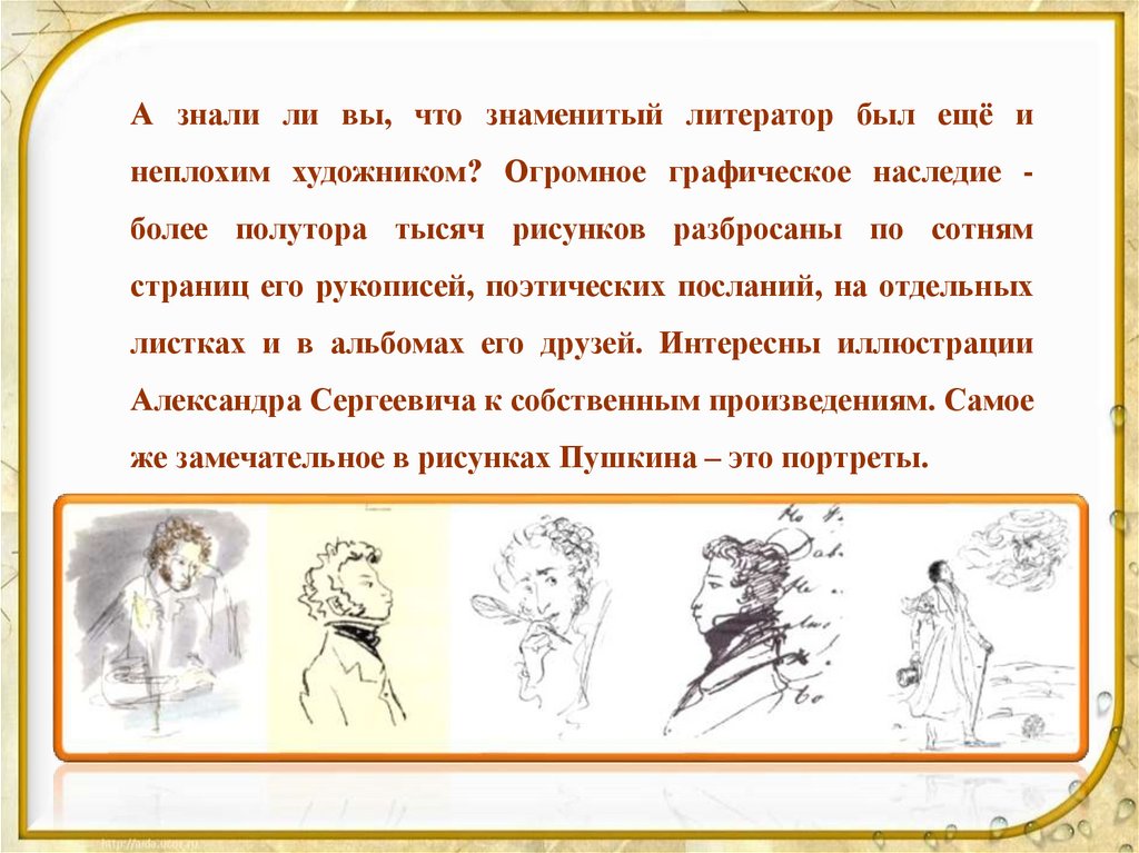 же замечательное в рисунках Пушкина – это портреты.