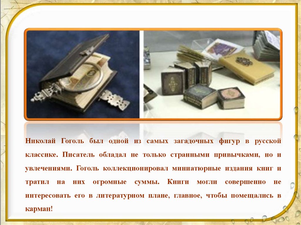 увлечениями. Гоголь коллекционировал миниатюрные издания книг и