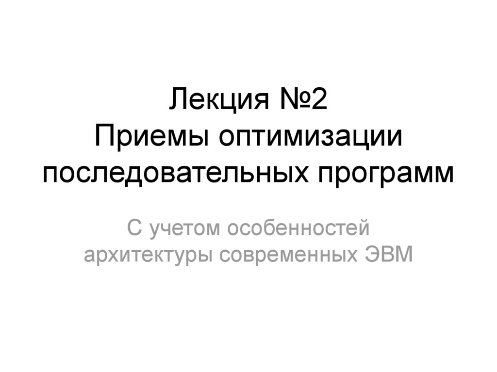 1. Лекция №2 Приемы оптимизации последовательных программ