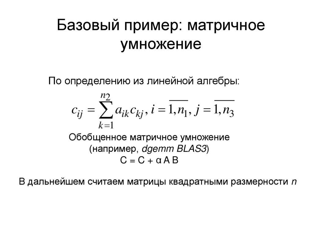 C(i,j) = C(i,j) + A(i,k) * B(k,j) {выполняем матричное умножение