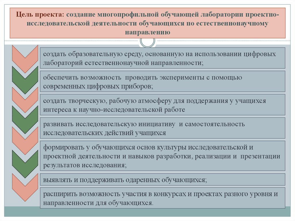 Цель проекта: создание многопрофильной обучающей лаборатории проектноисследовательской деятельности обучающихся по естественнонаучномунаправлению