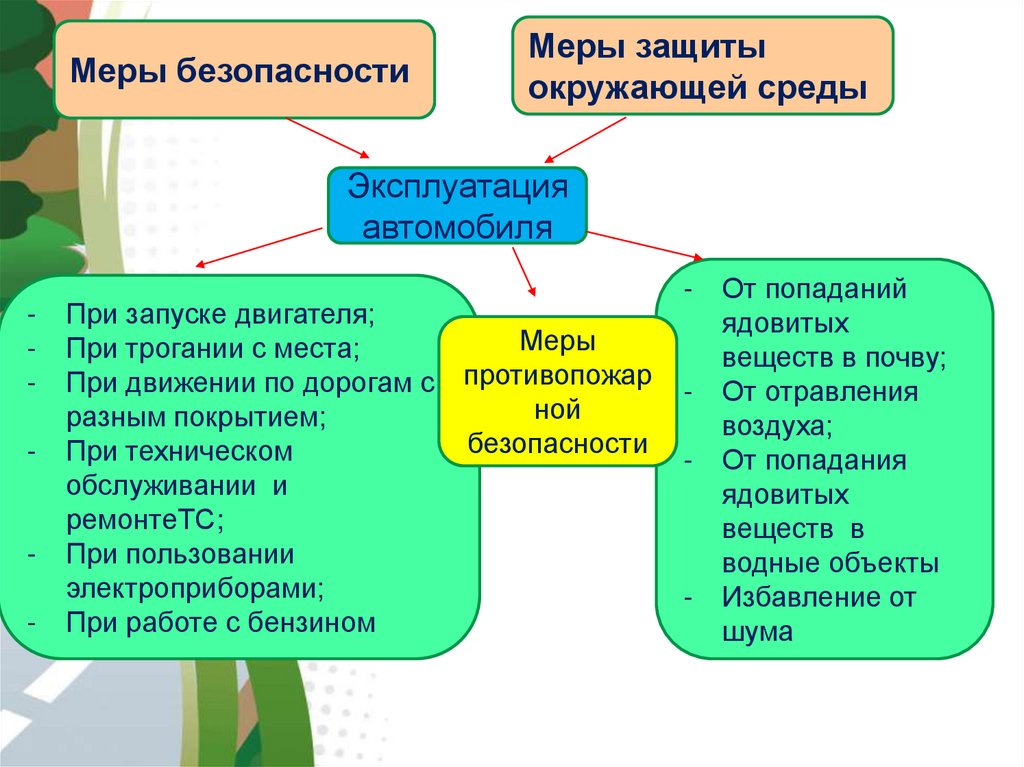 Меры безопасности и защиты окружающей природной среды при эксплуатации автомобиля