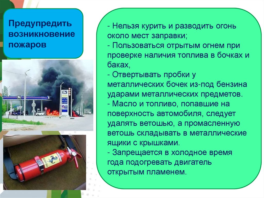 - Нельзя курить и разводить огонь