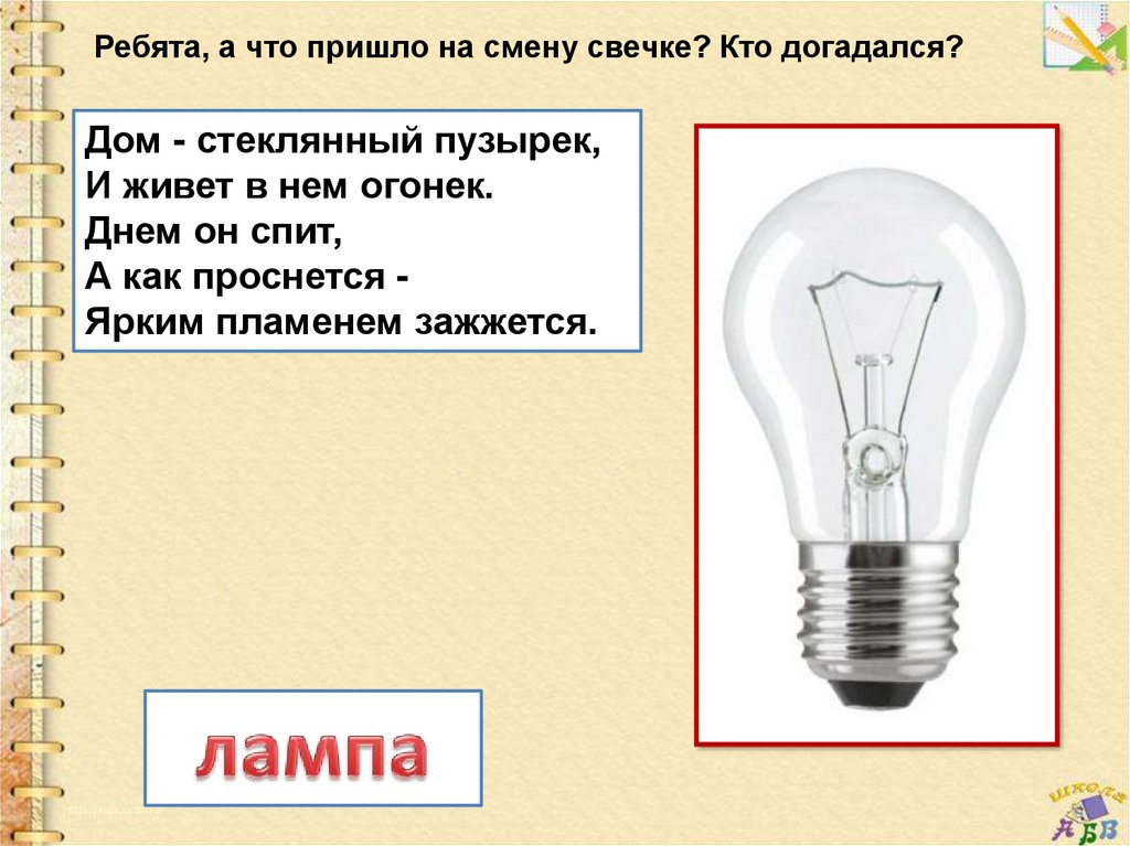 Ребята, а что пришло на смену свечке? Кто догадался?Дом - стеклянный пузырек,