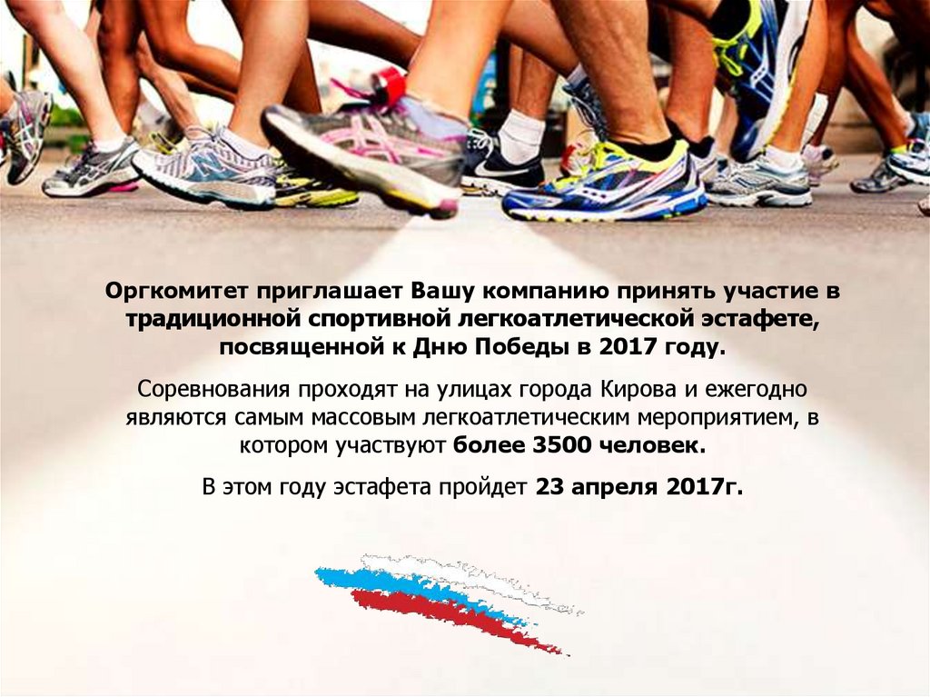 Оргкомитет приглашает Вашу компанию принять участие втрадиционной спортивной легкоатлетической эстафете,