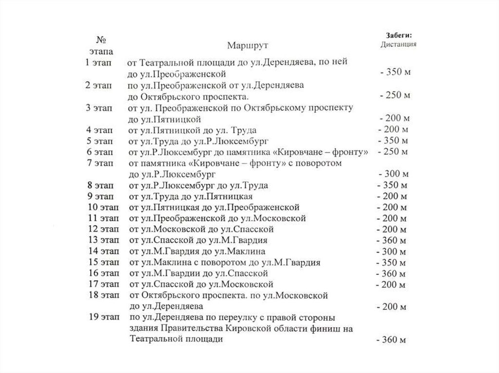 финиш на Театральной площади (см приложение).