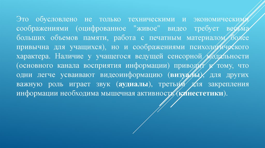 Это обусловлено не только техническими и экономическимисоображениями (оцифрованное "живое" видео требует весьма