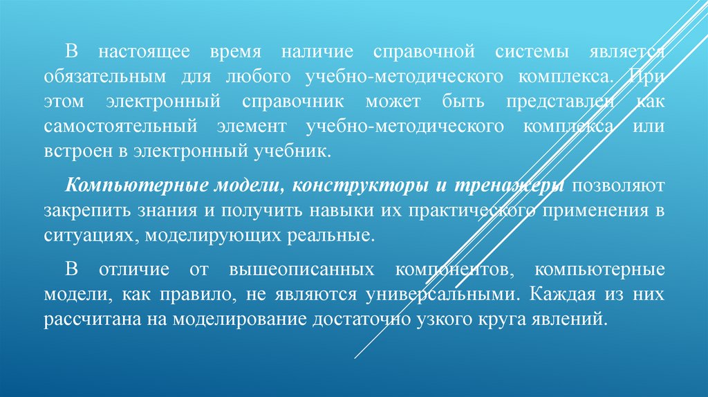 В настоящее время наличие справочной системы являетсяобязательным для любого учебно-методического комплекса. При
