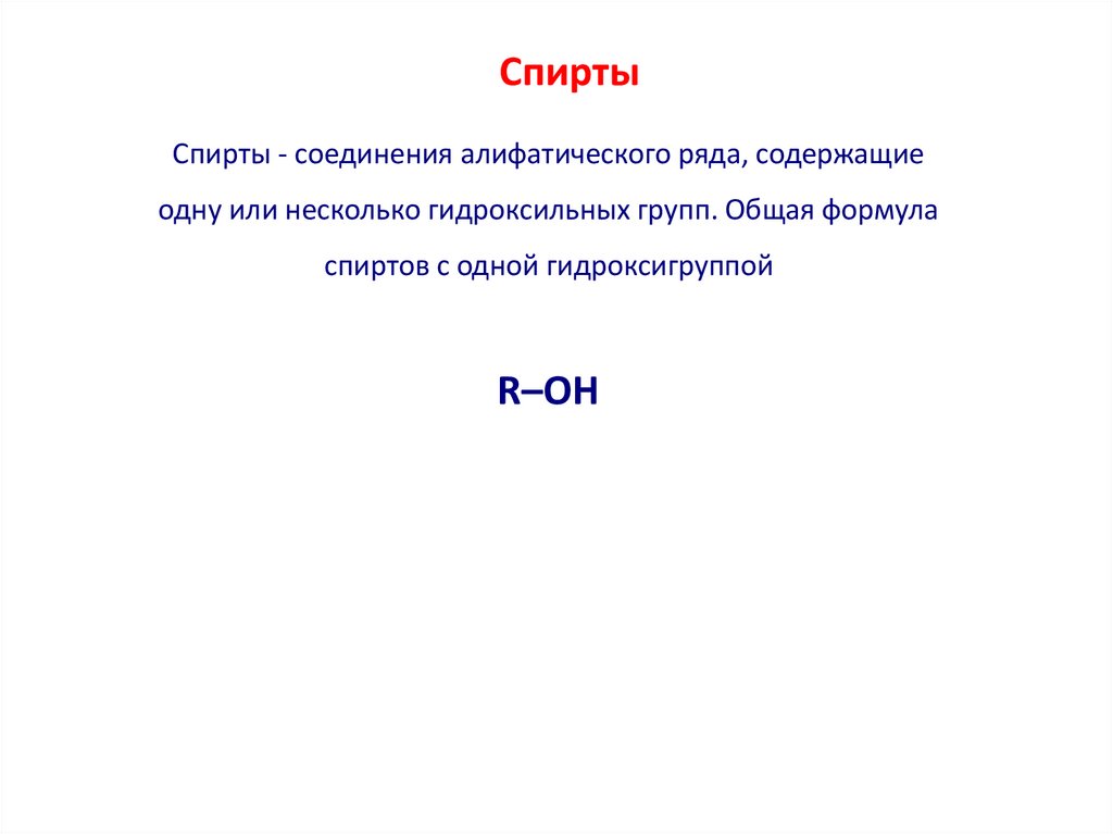 СпиртыСпирты - соединения алифатического ряда, содержащие