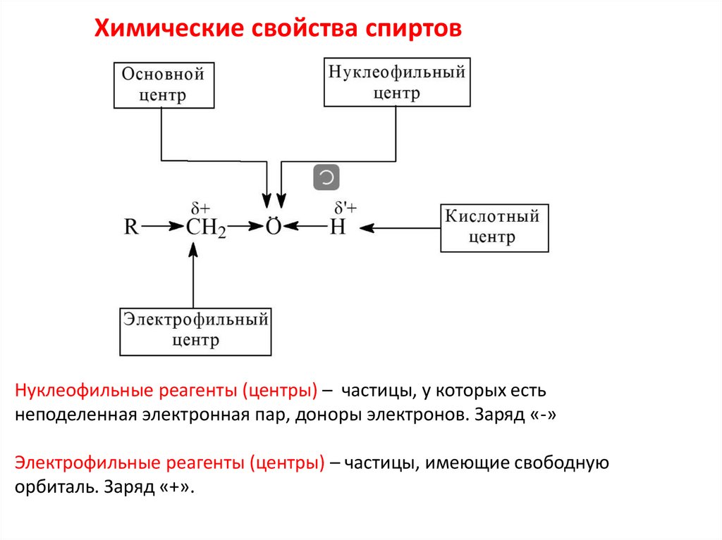 Химические свойства спиртовНуклеофильные реагенты (центры) – частицы, у которых есть