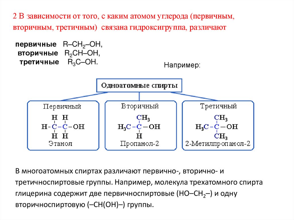 2 В зависимости от того, с каким атомом углерода (первичным,вторичным, третичным) связана гидроксигруппа, различают
