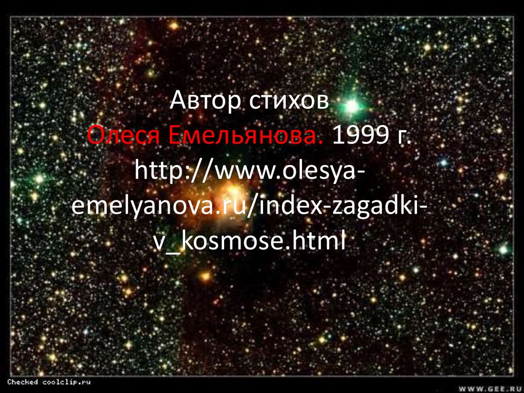 http://www.olesyaemelyanova.ru/index-zagadkiv_kosmose.html