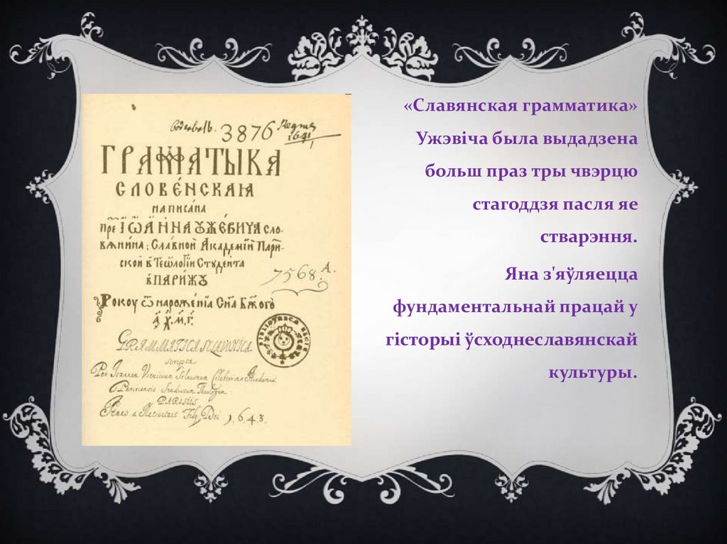 А Ў Т А Р З А К О Н Ч Ы Ў С В А Ю Г РА М А Т Ы К У" Э П И Г РА М О Й Н А К Н И Г У " , Я К А Я З ' Я ЎЛ Я Л А С Я