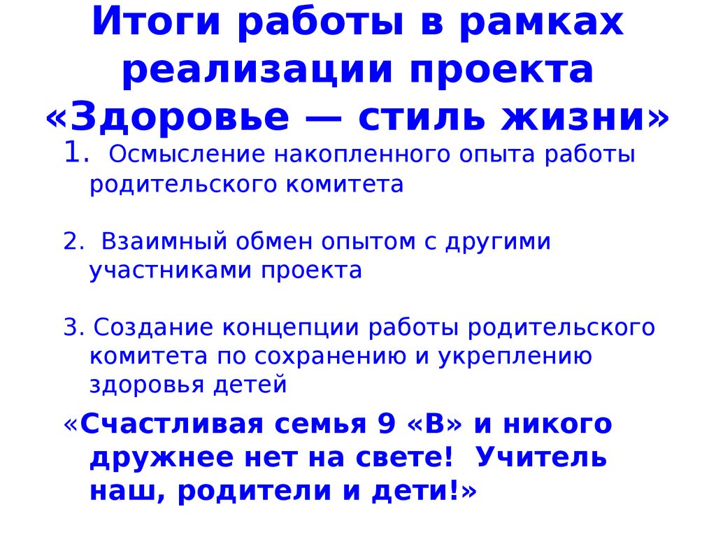 Итоги работы в рамкахреализации проекта