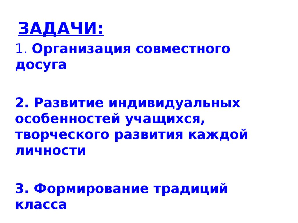 ЗАДАЧИ:1. Организация совместного