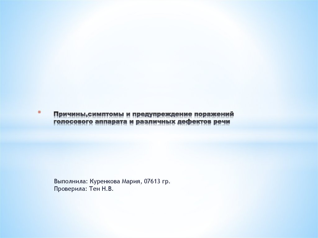 1. Причины,симптомы и предупреждение поражений голосового аппарата и различных дефектов речи