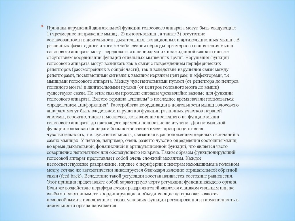 *Причины нарушений двигательной функции голосового аппарата могут быть следующие: