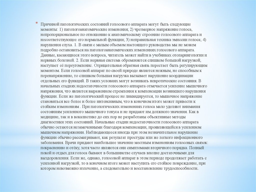 *Причиной патологических состояний голосового аппарата могут быть следующие