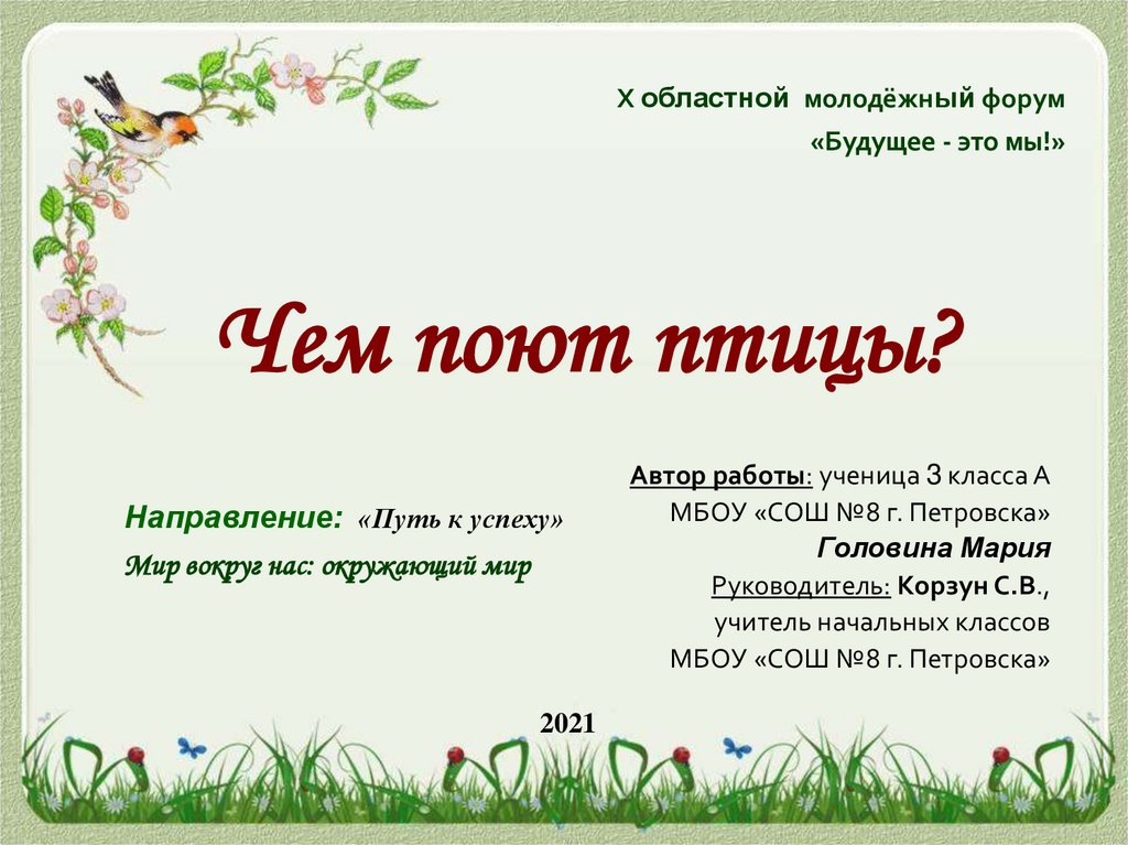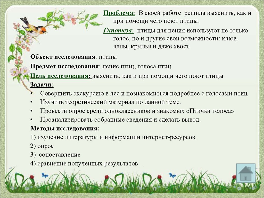 Предмет исследования: пение птиц, голоса птиц