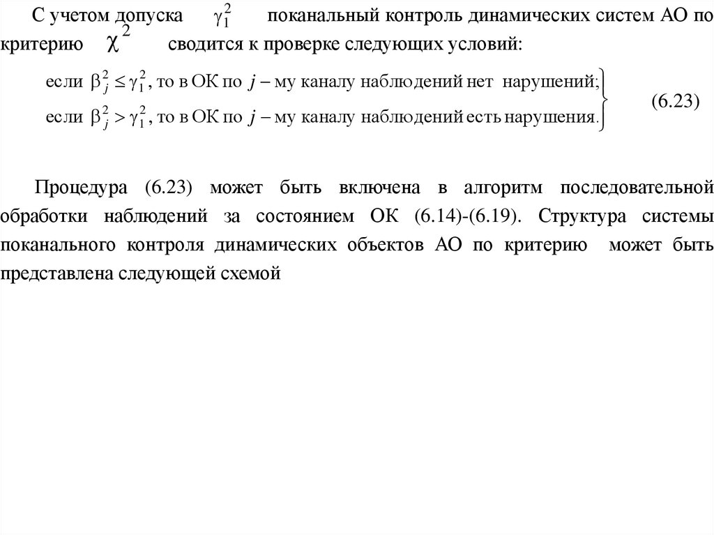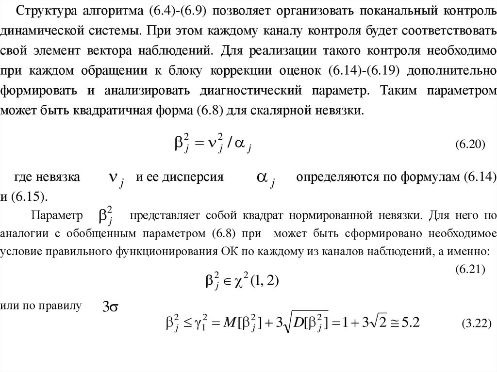 Структура алгоритма (6.4)-(6.9) позволяет организовать поканальный контрольдинамической системы. При этом каждому каналу контроля будет соответствовать