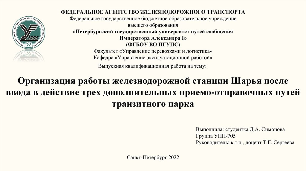ФЕДЕРАЛЬНОЕ АГЕНТСТВО ЖЕЛЕЗНОДОРОЖНОГО ТРАНСПОРТАФедеральное государственное бюджетное образовательное учреждение