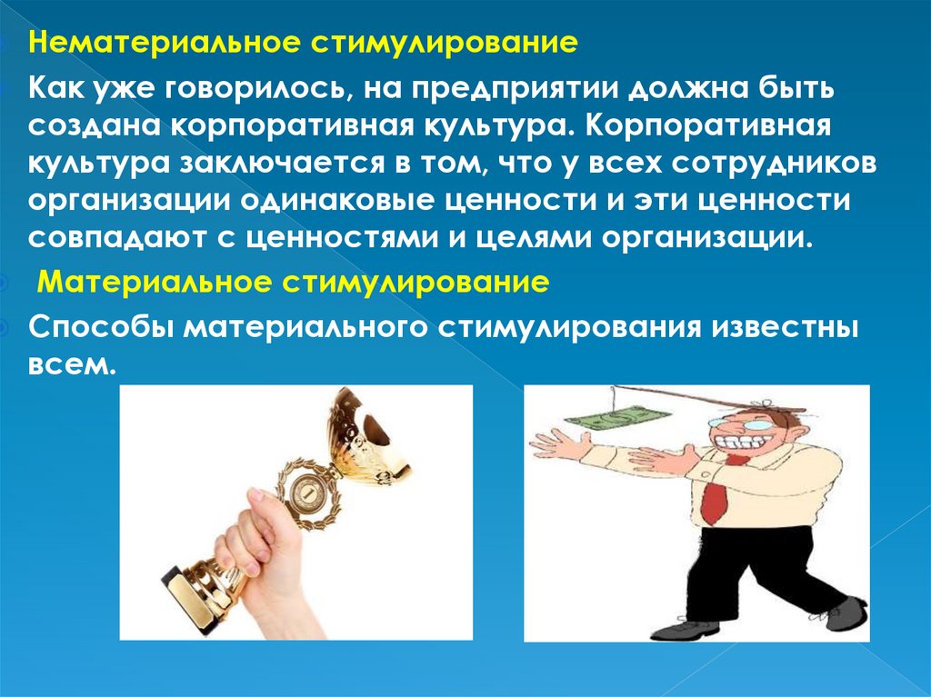 Говоря о стимулировании сотрудников, было бы неправильноговорить только о материальном стимулировании.