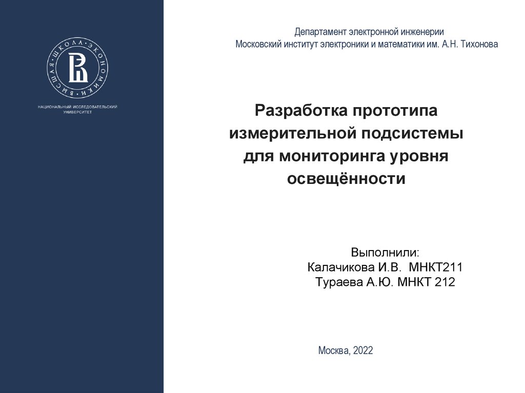 Департамент электронной инженерииМосковский институт электроники и математики им. А.Н. Тихонова