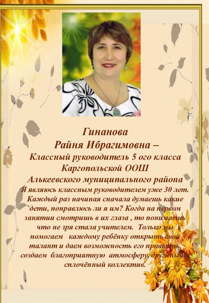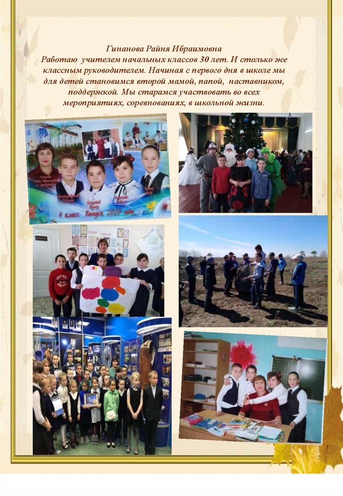Гинанова Райня ИбраимовнаРаботаю учителем начальных классов 30 лет. И столько же