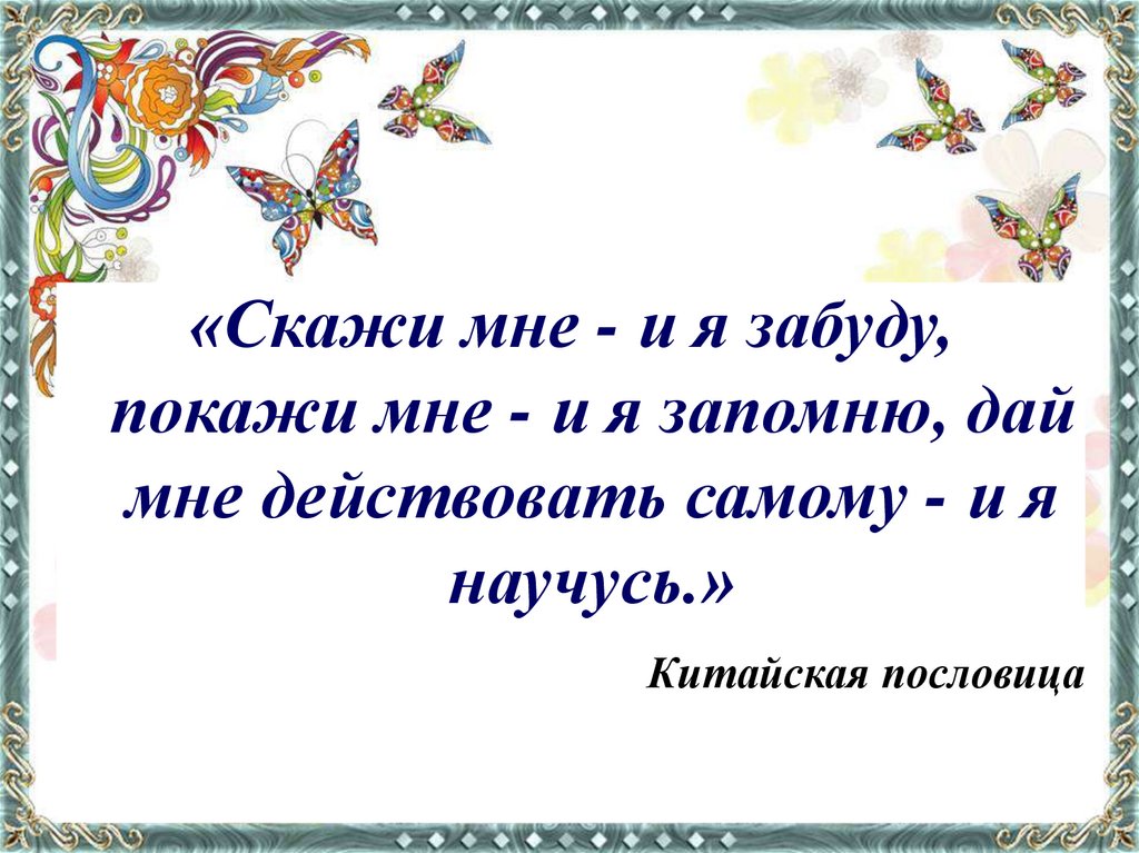 «Скажи мне - и я забуду,покажи мне - и я запомню, дай