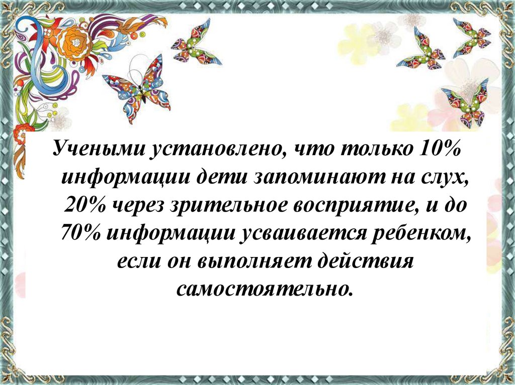 Учеными установлено, что только 10%информации дети запоминают на слух,