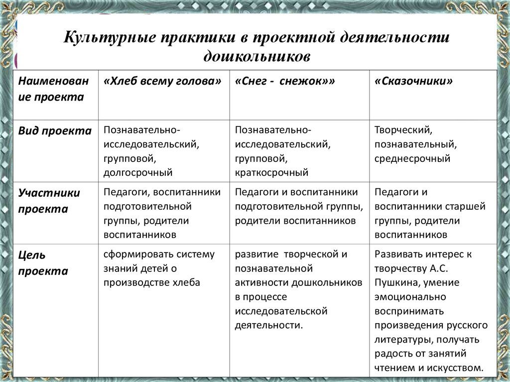 Культурные практики в проектной деятельностидошкольников