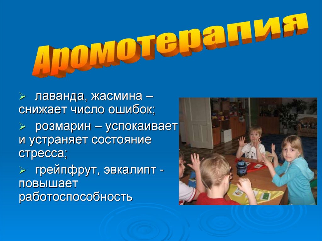 лаванда, жасмина –снижает число ошибок;