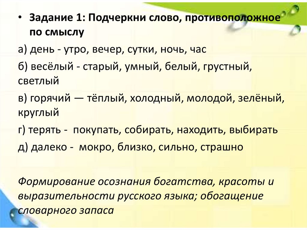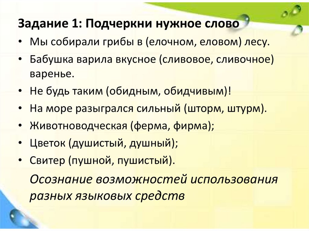 • Задание 5. Тебе необходимо среди данныхниже слов найти и подчеркнуть слово,