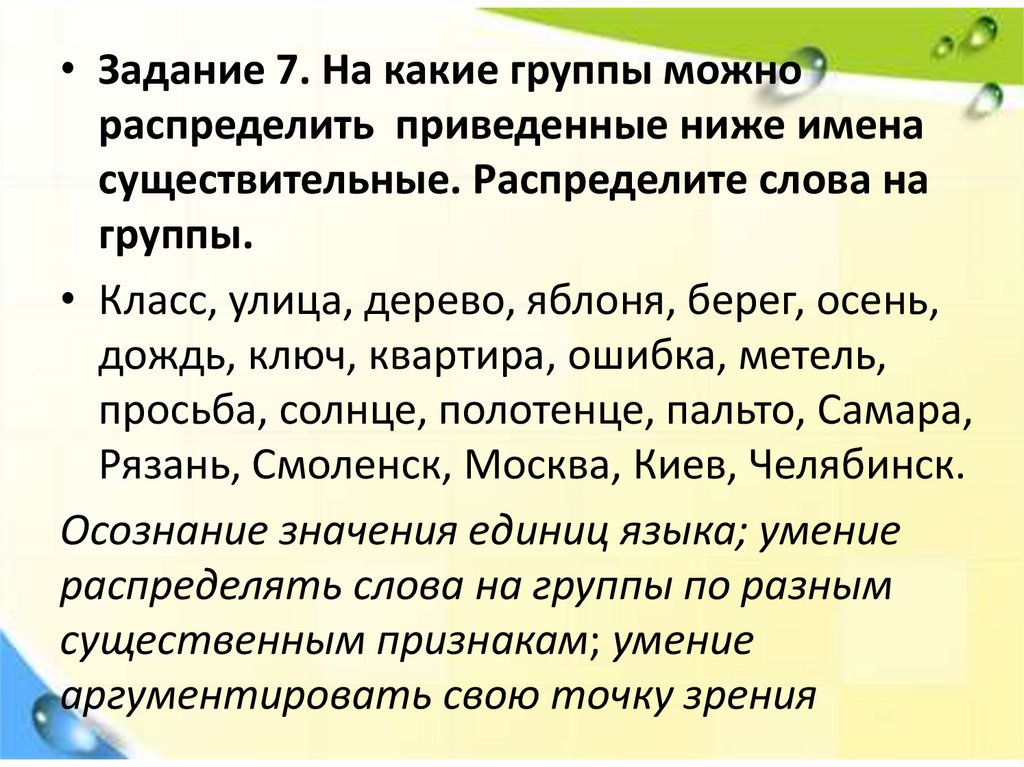 • Задание 7. На какие группы можнораспределить приведенные ниже имена
