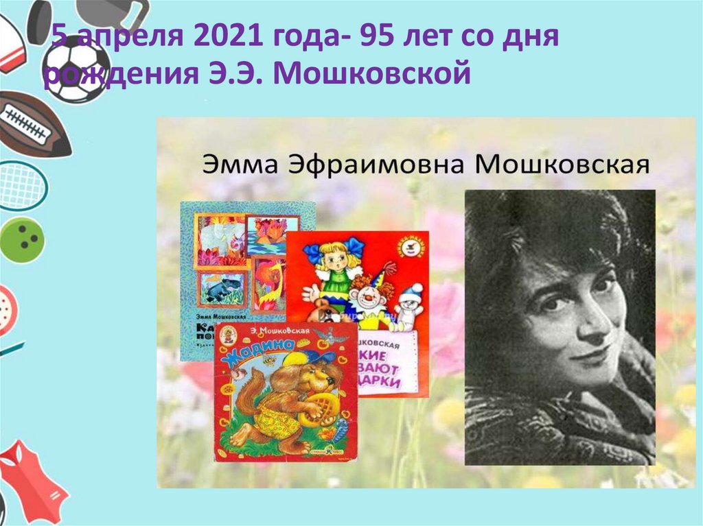 5 апреля 2021 года- 95 лет со днярождения Э.Э. Мошковской