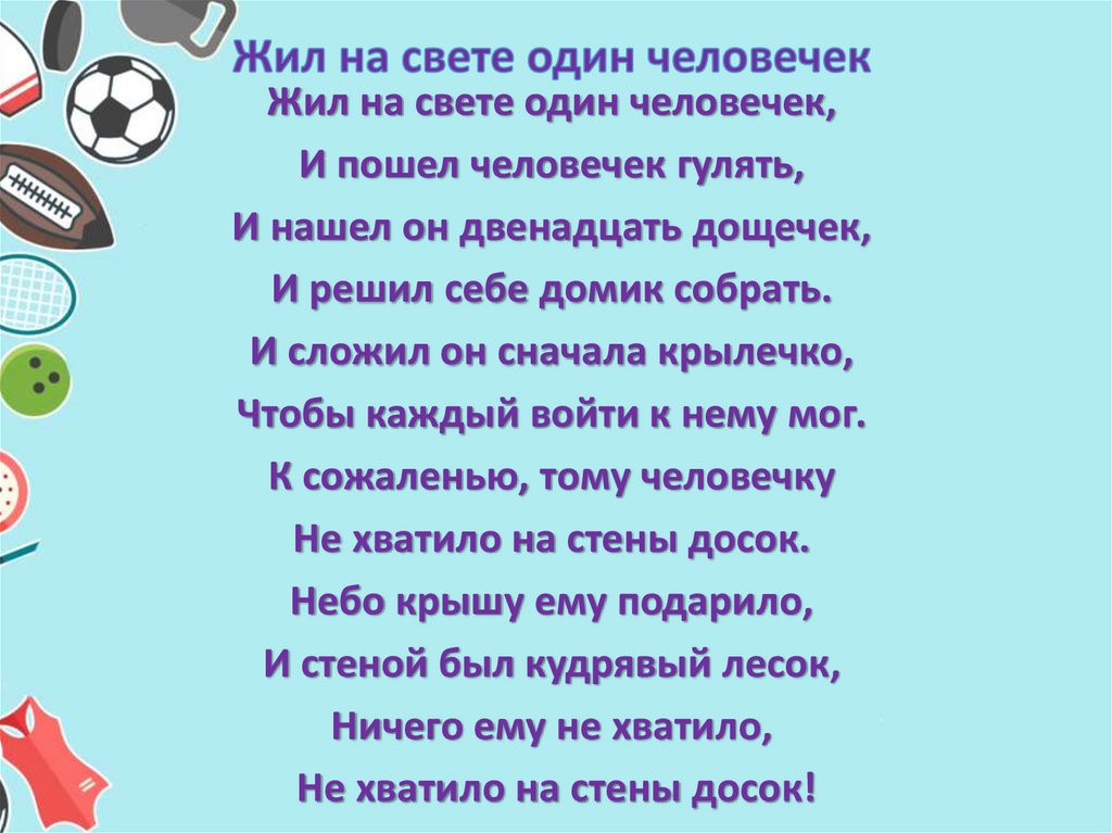 Жил на свете один человечек,И пошел человечек гулять,