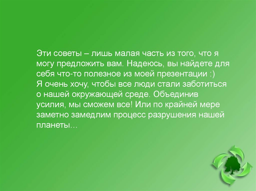 Разумеется, обычному человеку неподвластно решениемногих экологических проблем без специальных знаний