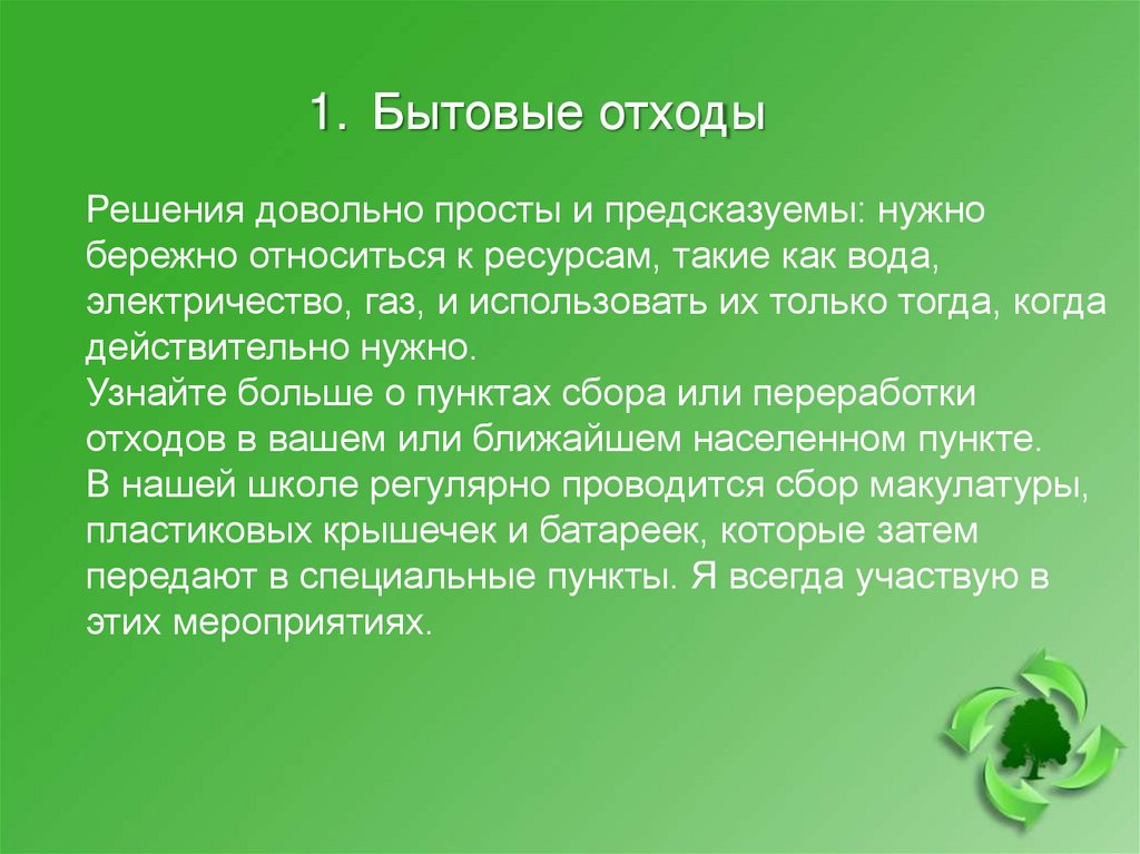 1. Бытовые отходыРешения довольно просты и предсказуемы: нужно