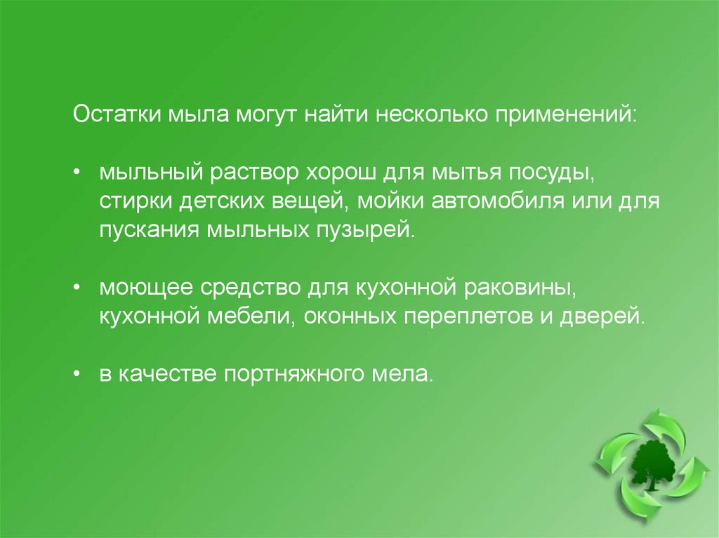 Остатки мыла могут найти несколько применений:• мыльный раствор хорош для мытья посуды,