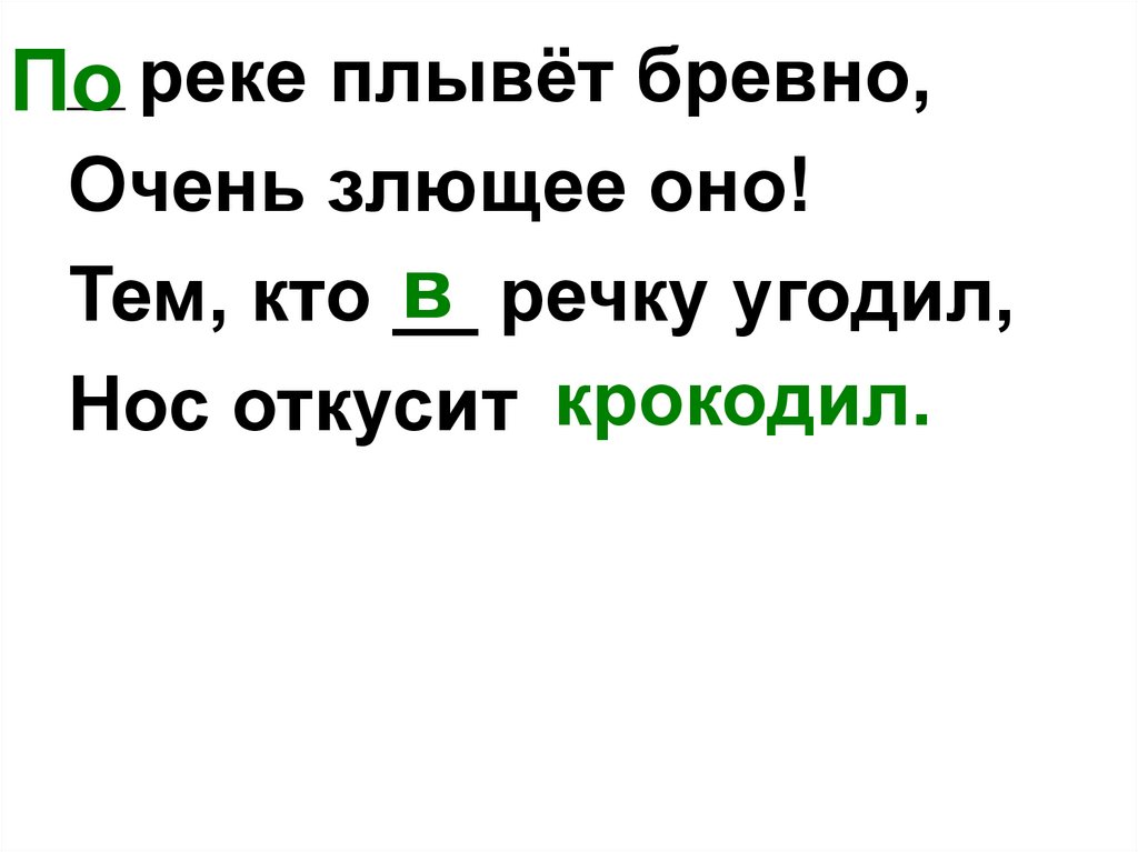 7. Красные лапки, длинная шея, щиплют __ пятки, беги ___ оглядки.