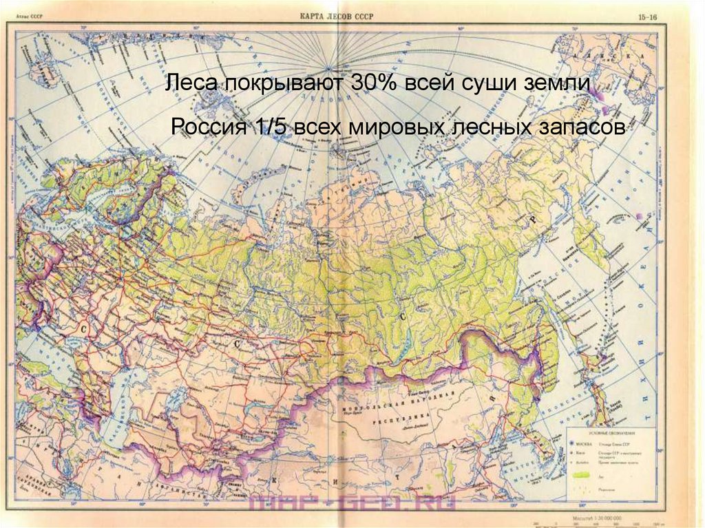 Леса покрывают 30% всей суши землиРоссия 1/5 всех мировых лесных запасов