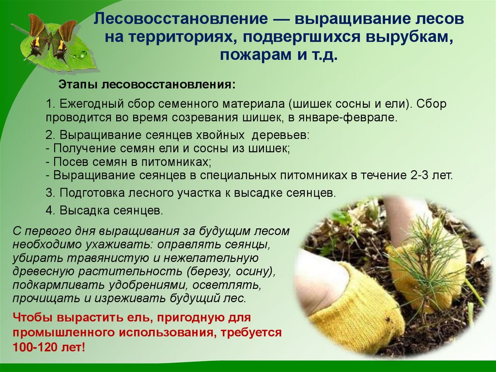 Лесовосстановление — выращивание лесовна территориях, подвергшихся вырубкам,