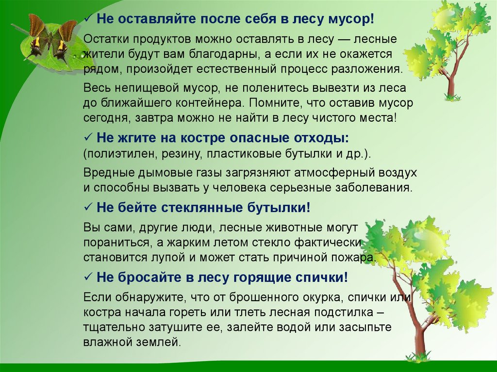 Главная задача гостей леса сохранить лес в чистоте и порядке!