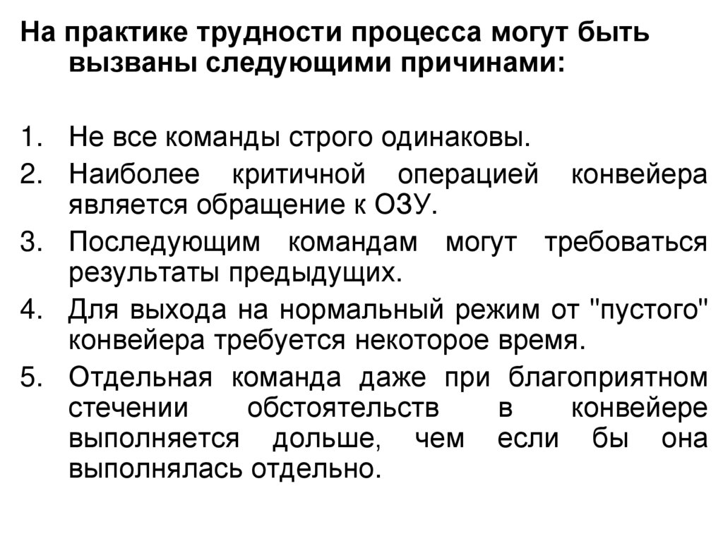 На практике трудности процесса могут бытьвызваны следующими причинами: