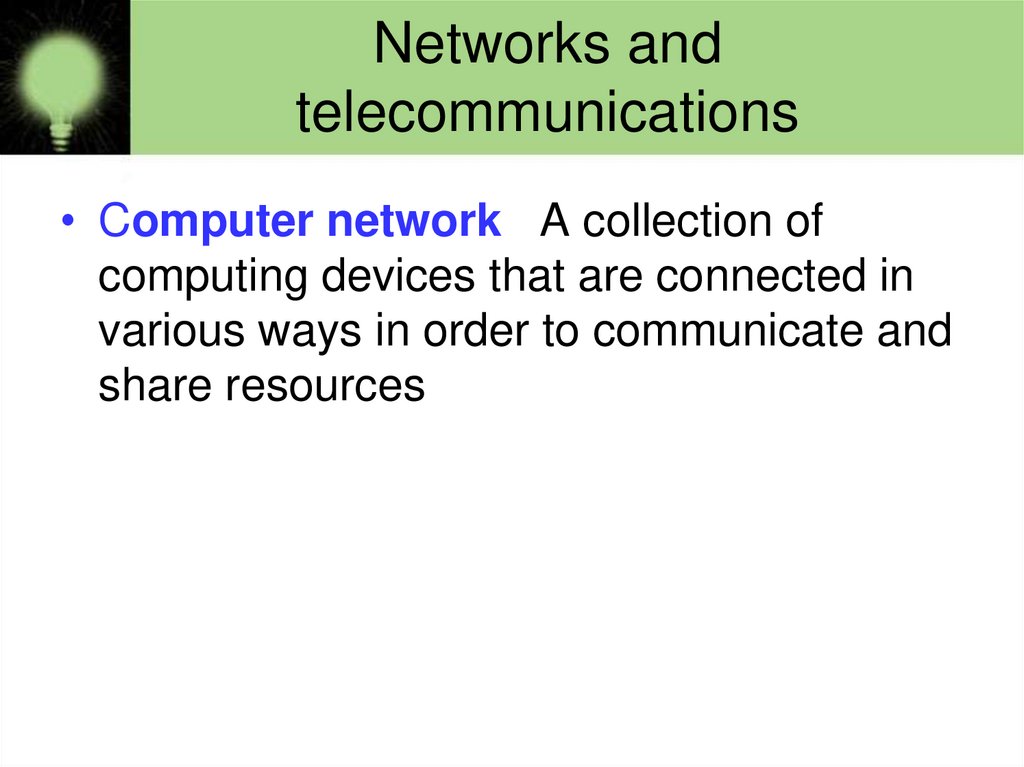 • Computer network A collection ofcomputing devices that are connected in