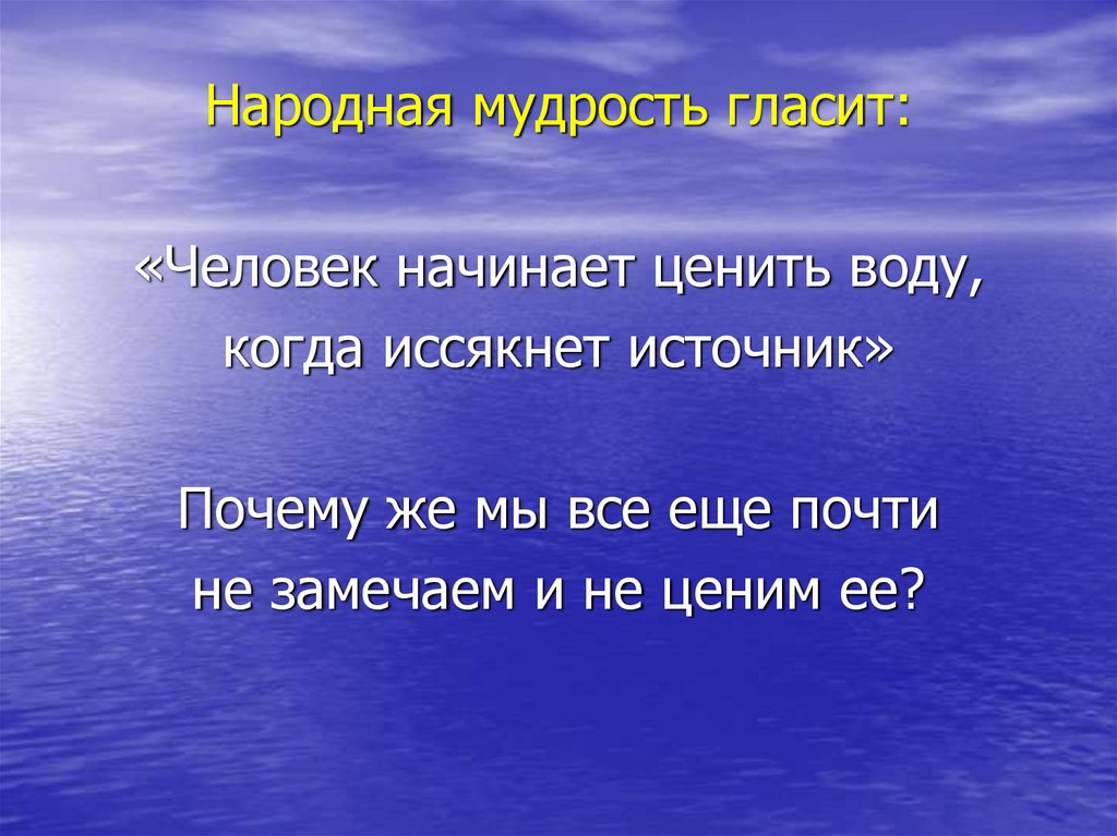 Народная мудрость гласит:«Человек начинает ценить воду,